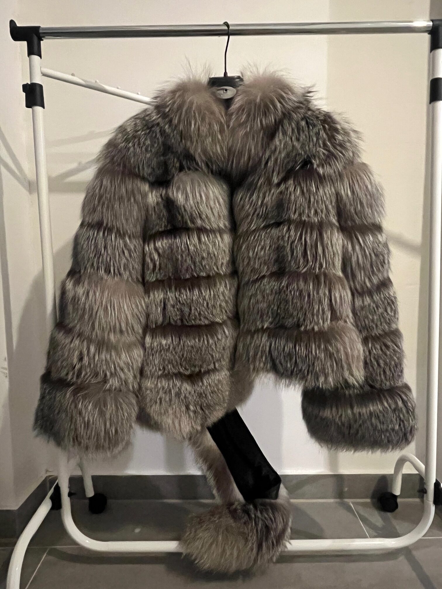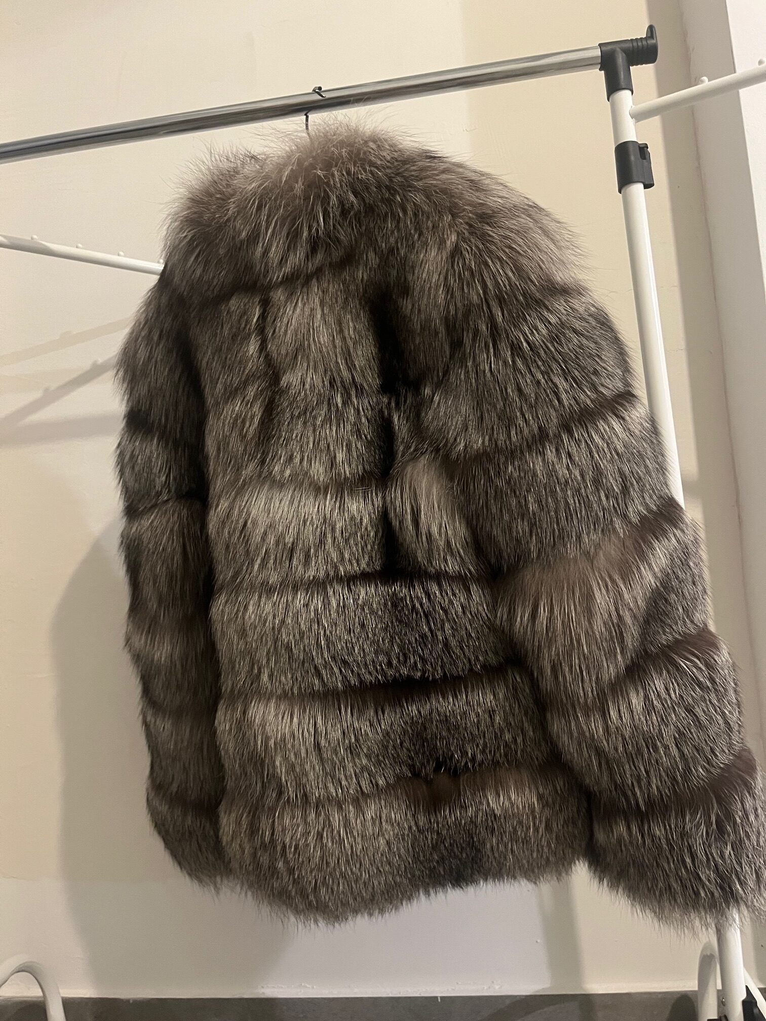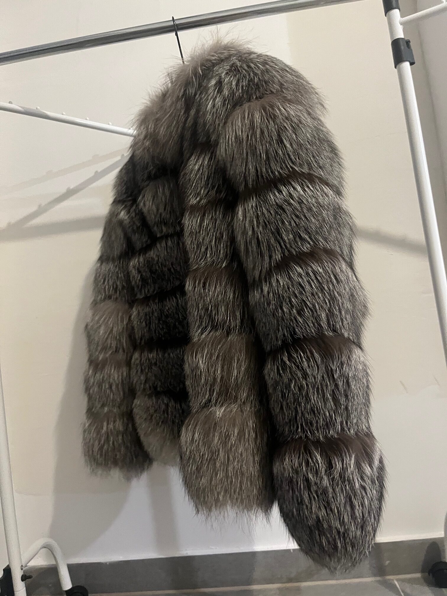 MODERNA SMEĐO-SIVA BUNDA IZRAĐENA OD VRLO BOGATOG KRZNA LISICE