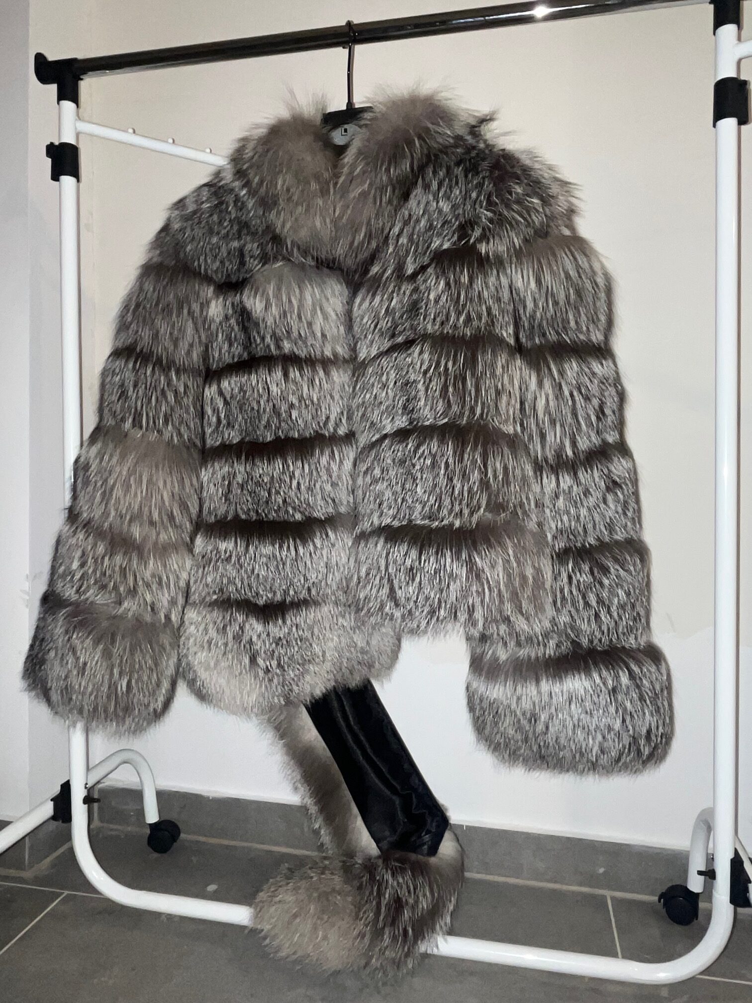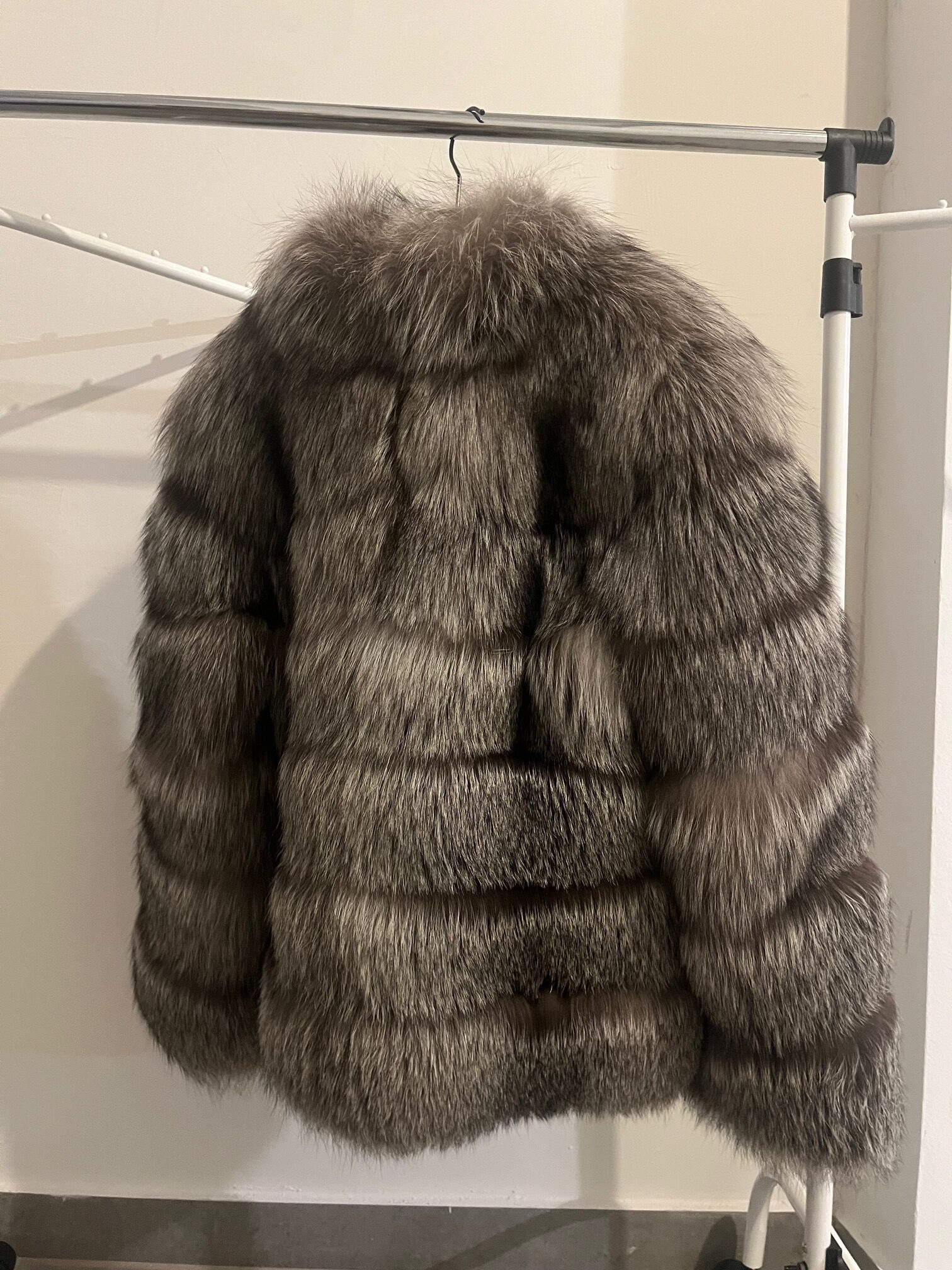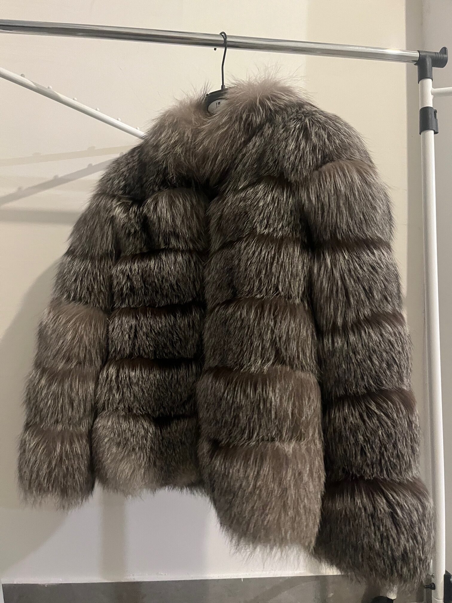 MODERNA SMEĐO-SIVA BUNDA IZRAĐENA OD VRLO BOGATOG KRZNA LISICE