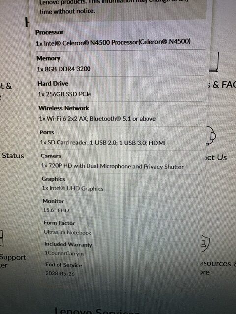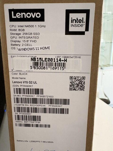 Tehničke karakteristike za Laptop Lenovo V15 G2 IJL, 15.6”/FHD/CELERON/8GB/256GB SSD/W11H