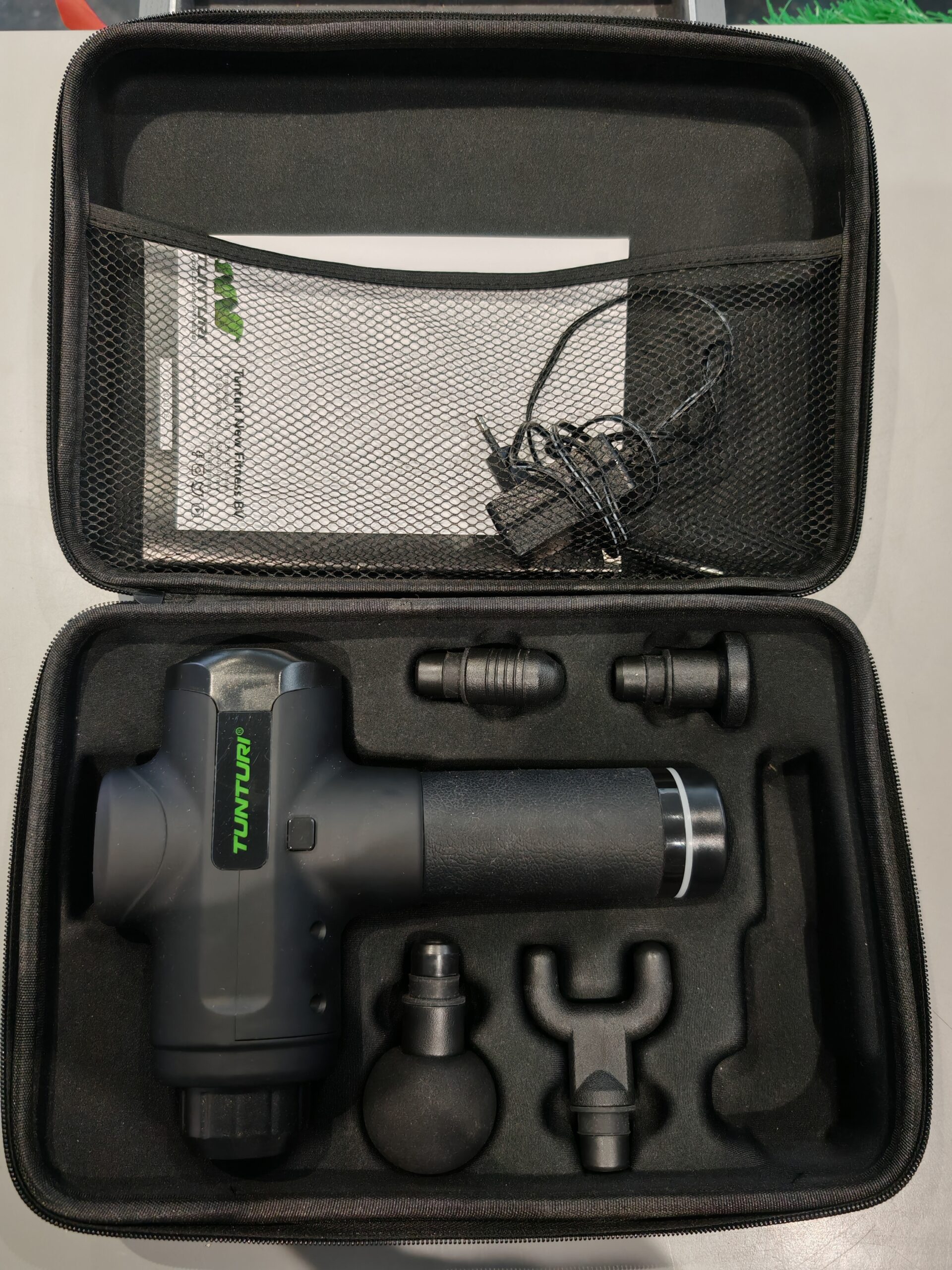 Pištolj za masažu ima dvadeset različitih opcija brzine u rasponu od 1200 do maksimalno 3300 okretaja u minuti. Može se koristiti za sve vrste masaža, od površinske do masaže koja dopire do dubljih mišića. Dolazi s četiri dijela za glavu s kojima možete masirati različite dijelove tijela i mišićne skupine.