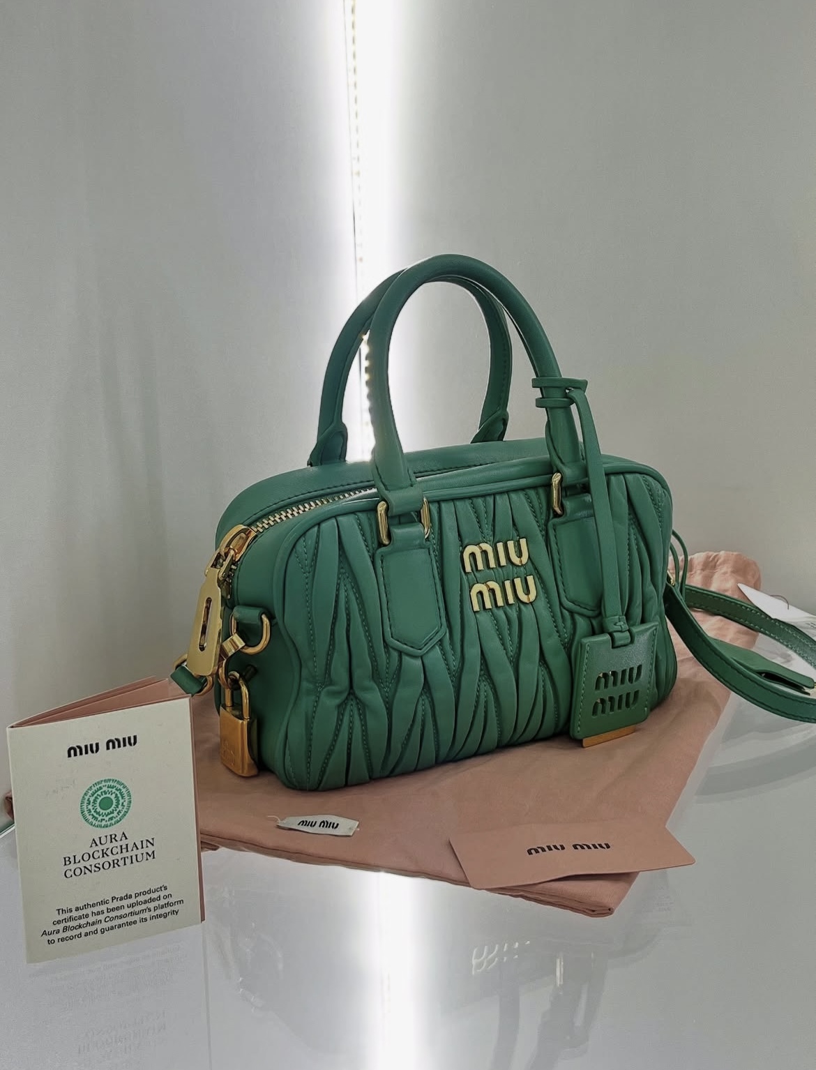 MODEL: Miu Miu Arcadie Small matelassé leather tote bag