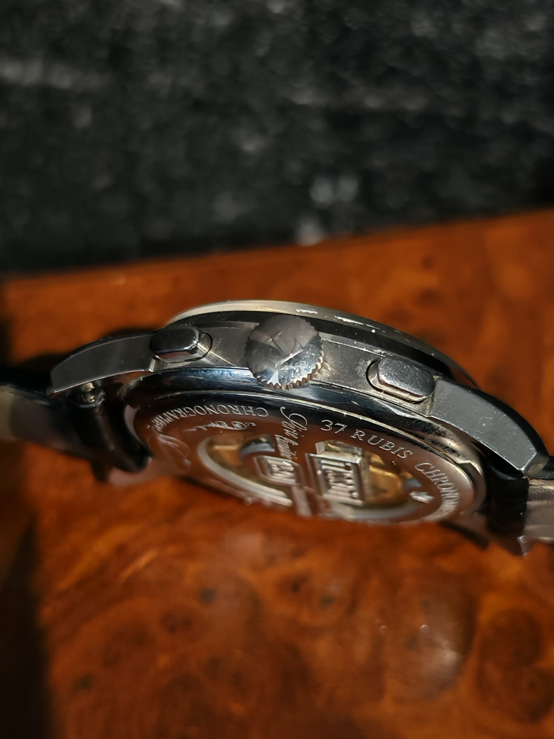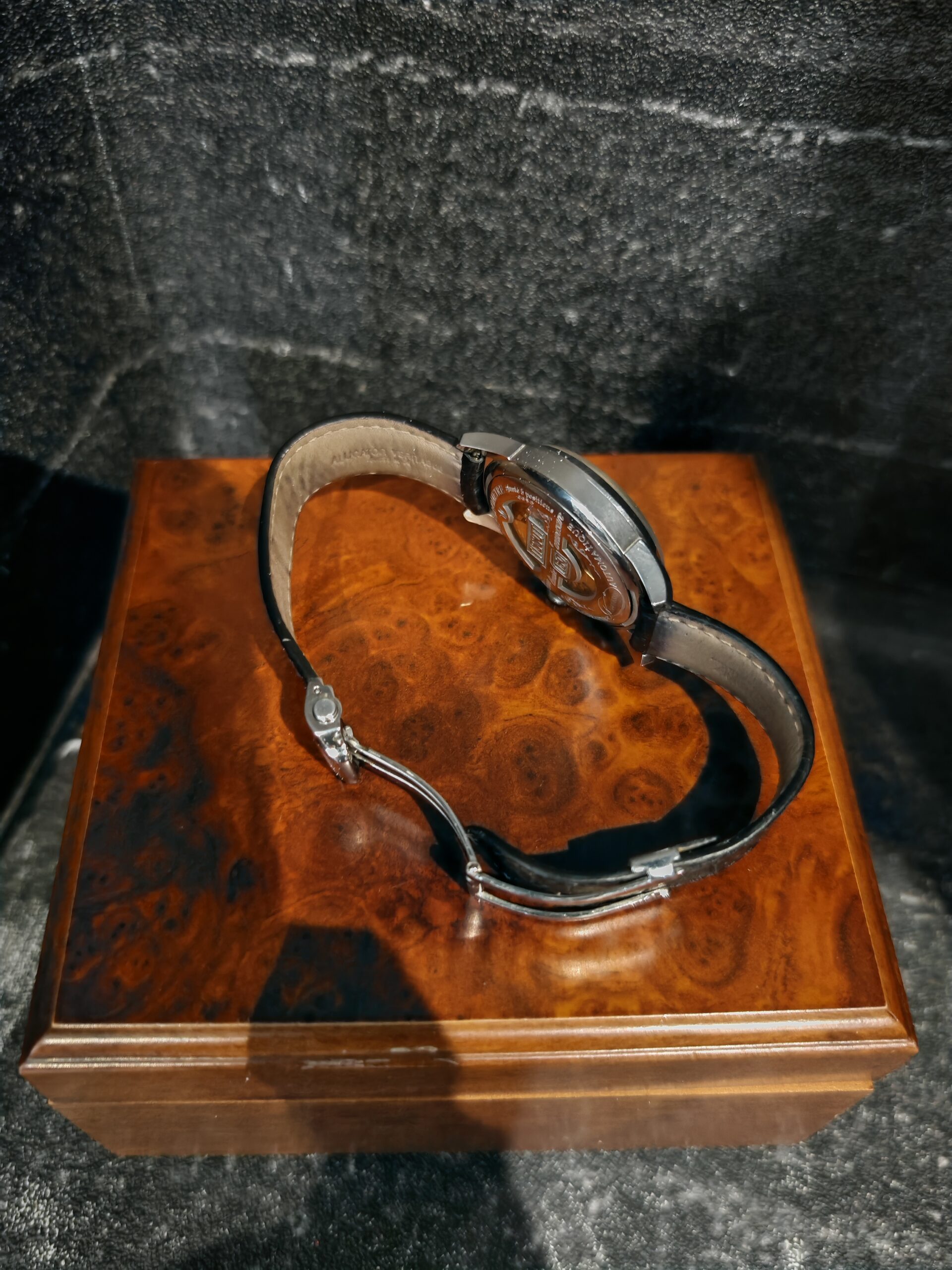 NOŠENO, REMEN IMA SITNE TRAGOVE KORIŠTENJA, NA STAKLU JEDNA CRTA (VIDLJIVO NA SLICI), KUTIJA PUKNUTA NA STRAŽNOJ STRANI (VIDLJIVO NA SLICI)