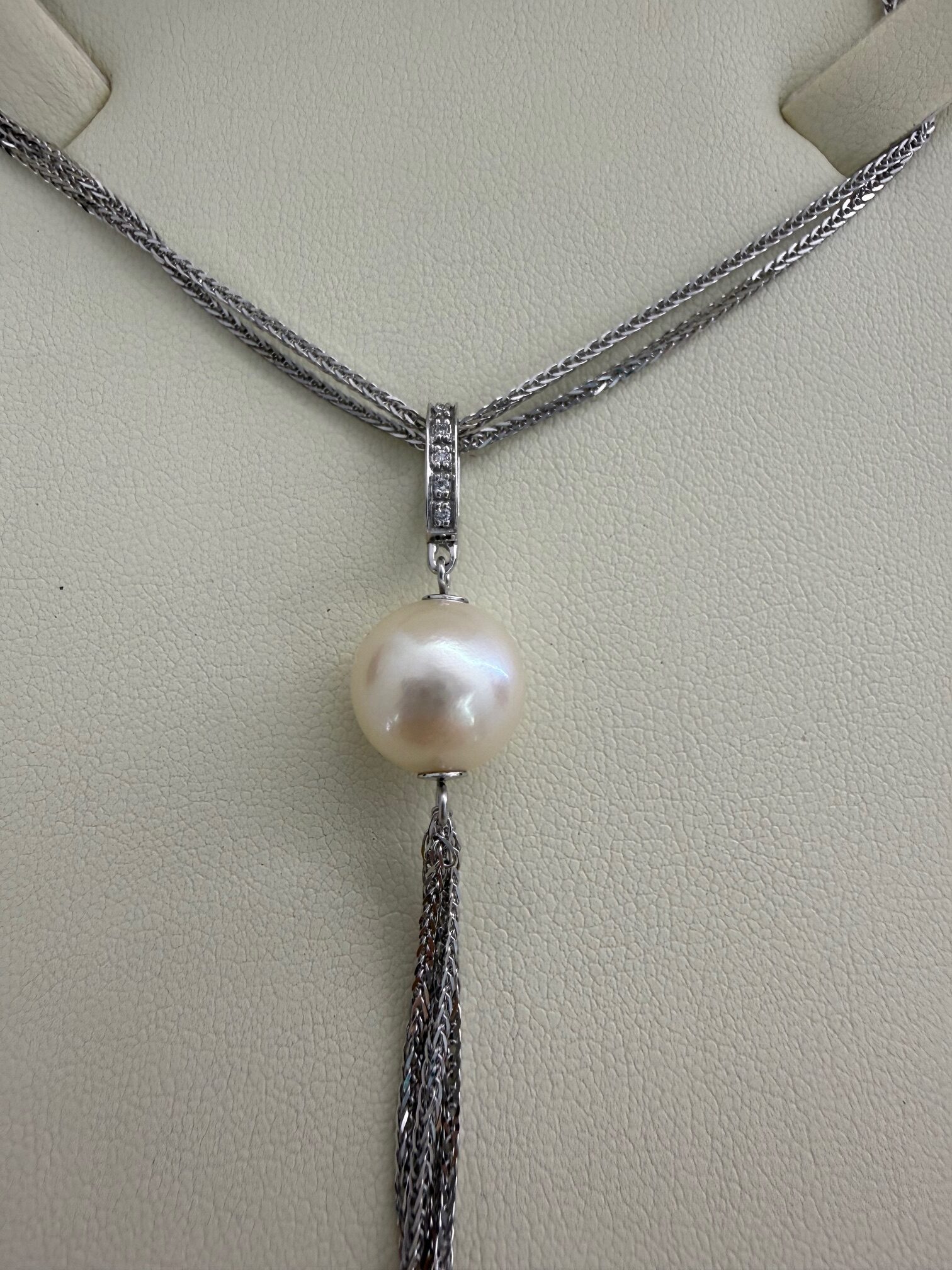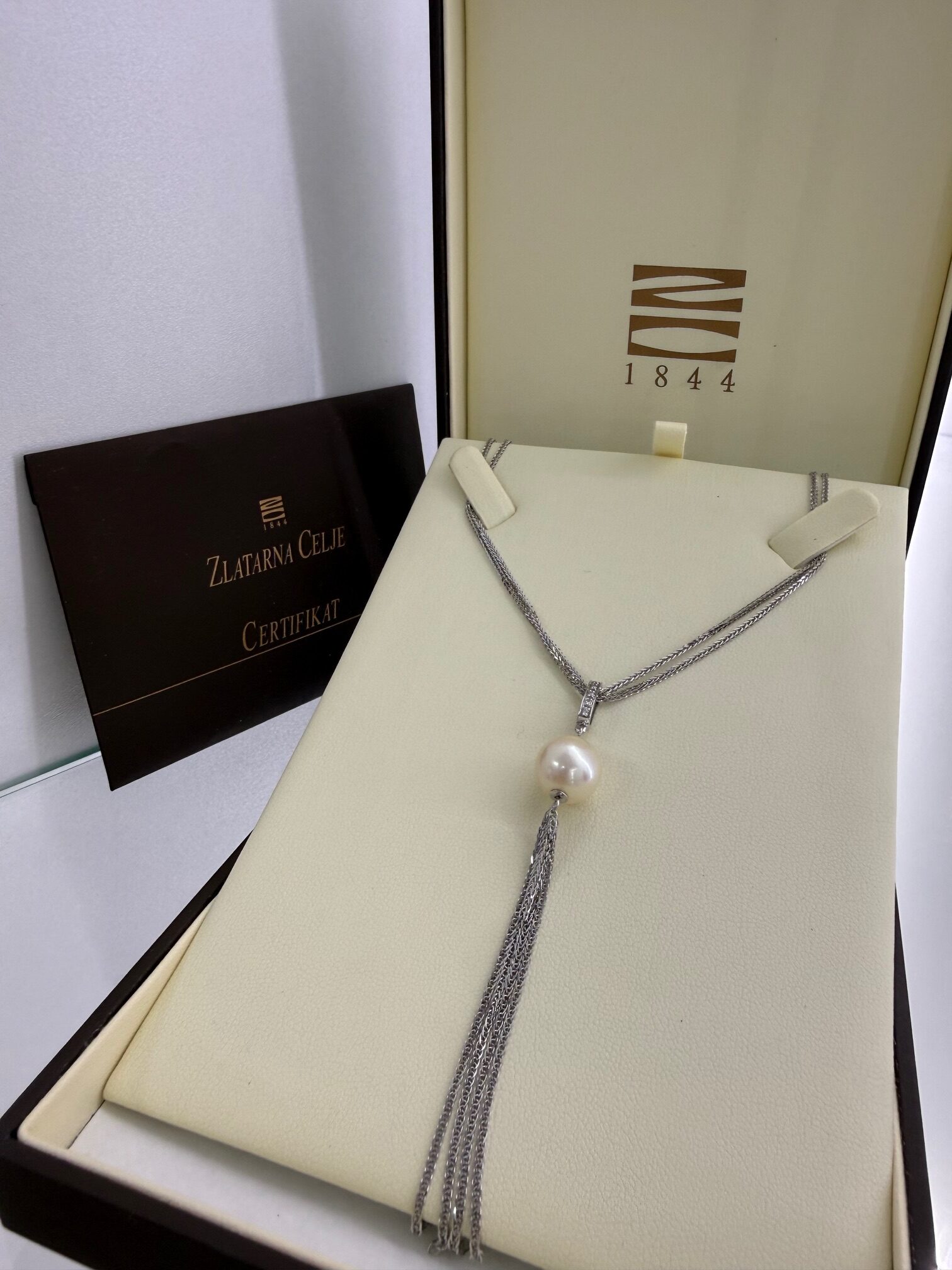 ZLATNA OGRLICA BRILJANTI IZRAĐENE OD 14 K / 585 FINOĆE ZLATA TE MASE: 8,32 G CERTIFIKAT ZLATARNA CELJE BRILJANTI CCA: 0,03 CT BOJA: G-TOP ČISTOĆA: VVS STANJE: VRLO OČUVAN, OČIŠĆEN DUŽINA LNČIĆA CCA: 45 CM , PRIVJESAK CCA: 9 CM ISPORUKA: OGRLICA, KUTIJA, CERTIFIKAT LOKACIJA: MESNIČKA 2, ZG / 092 5000 550