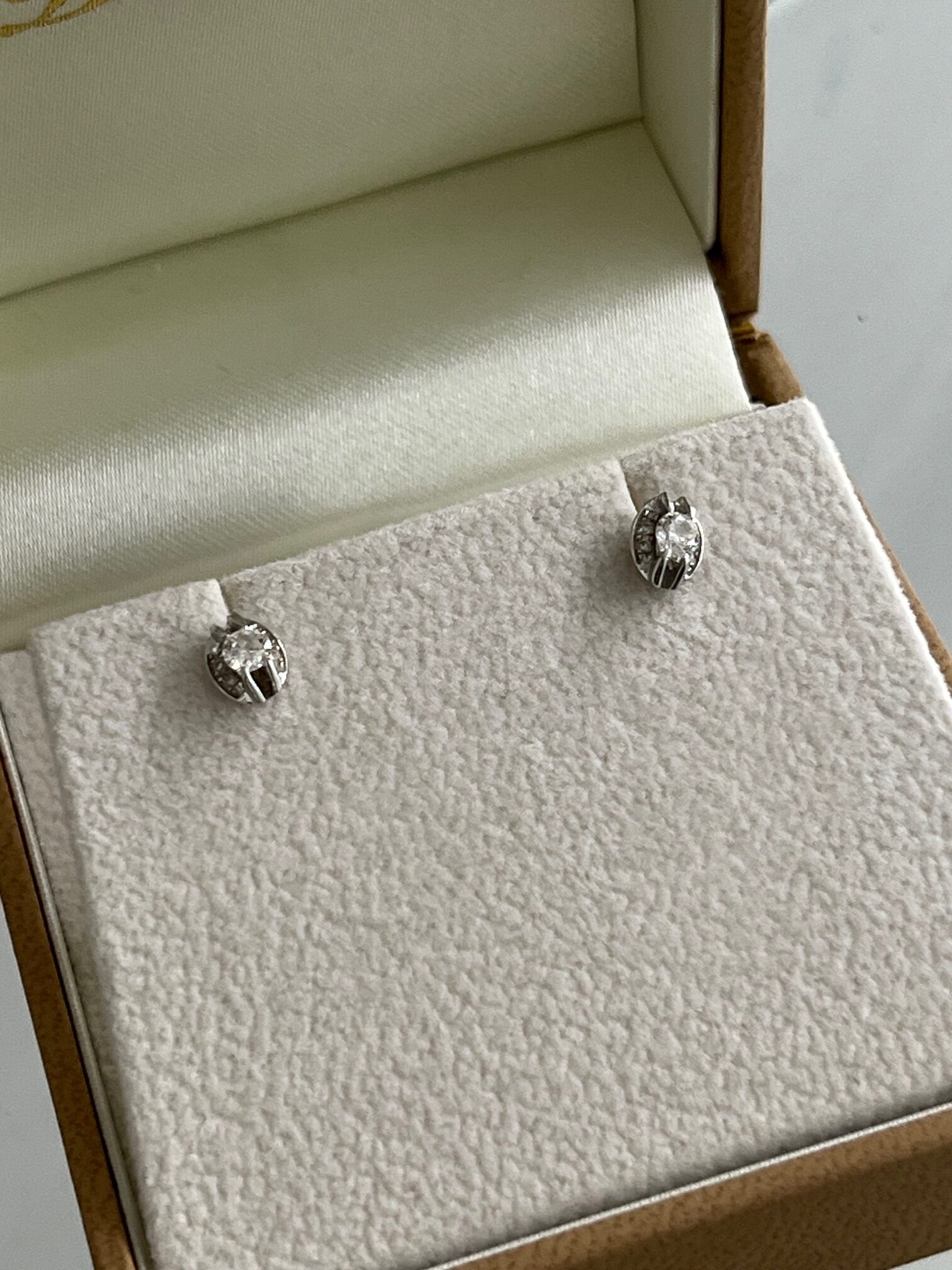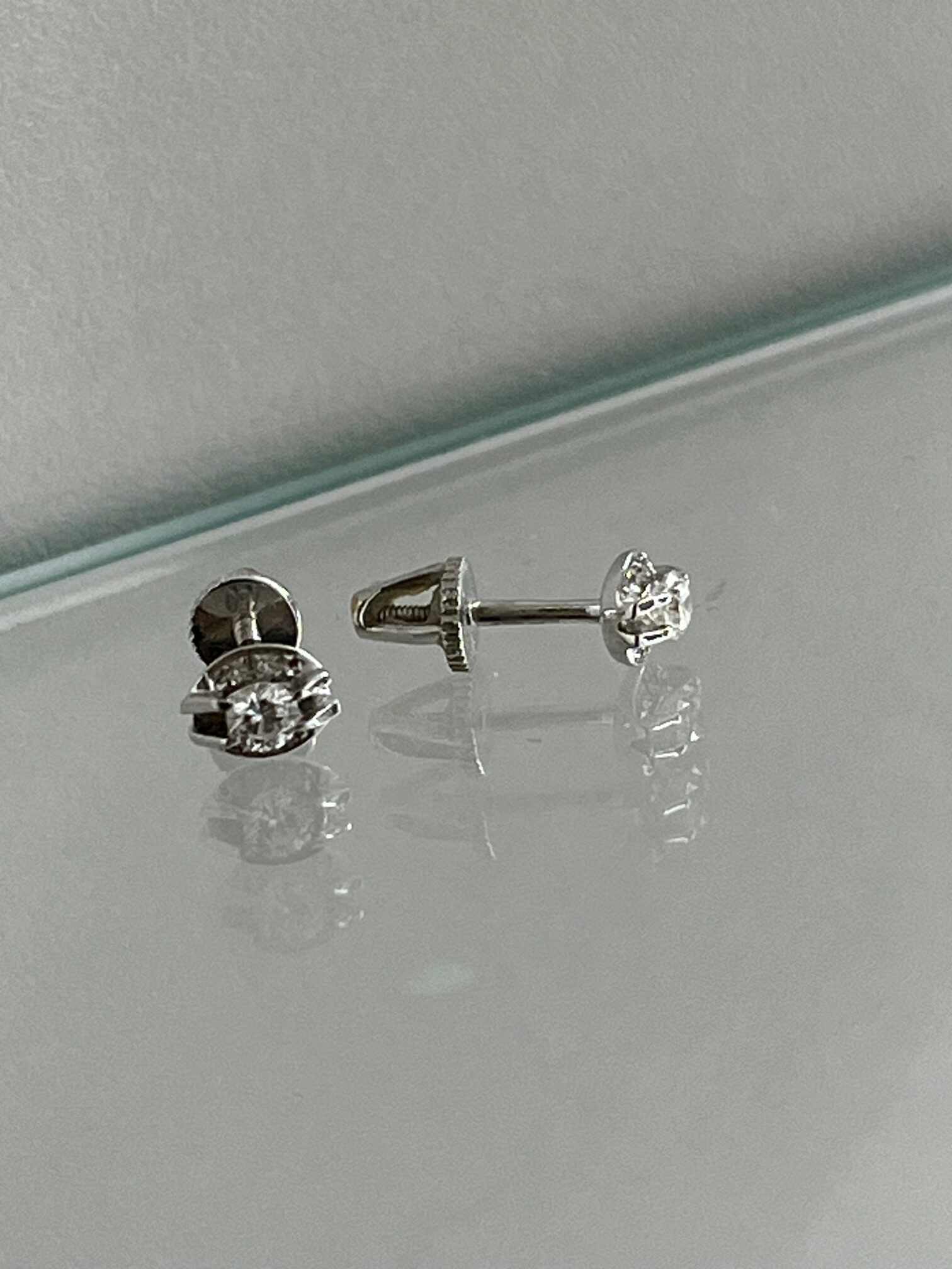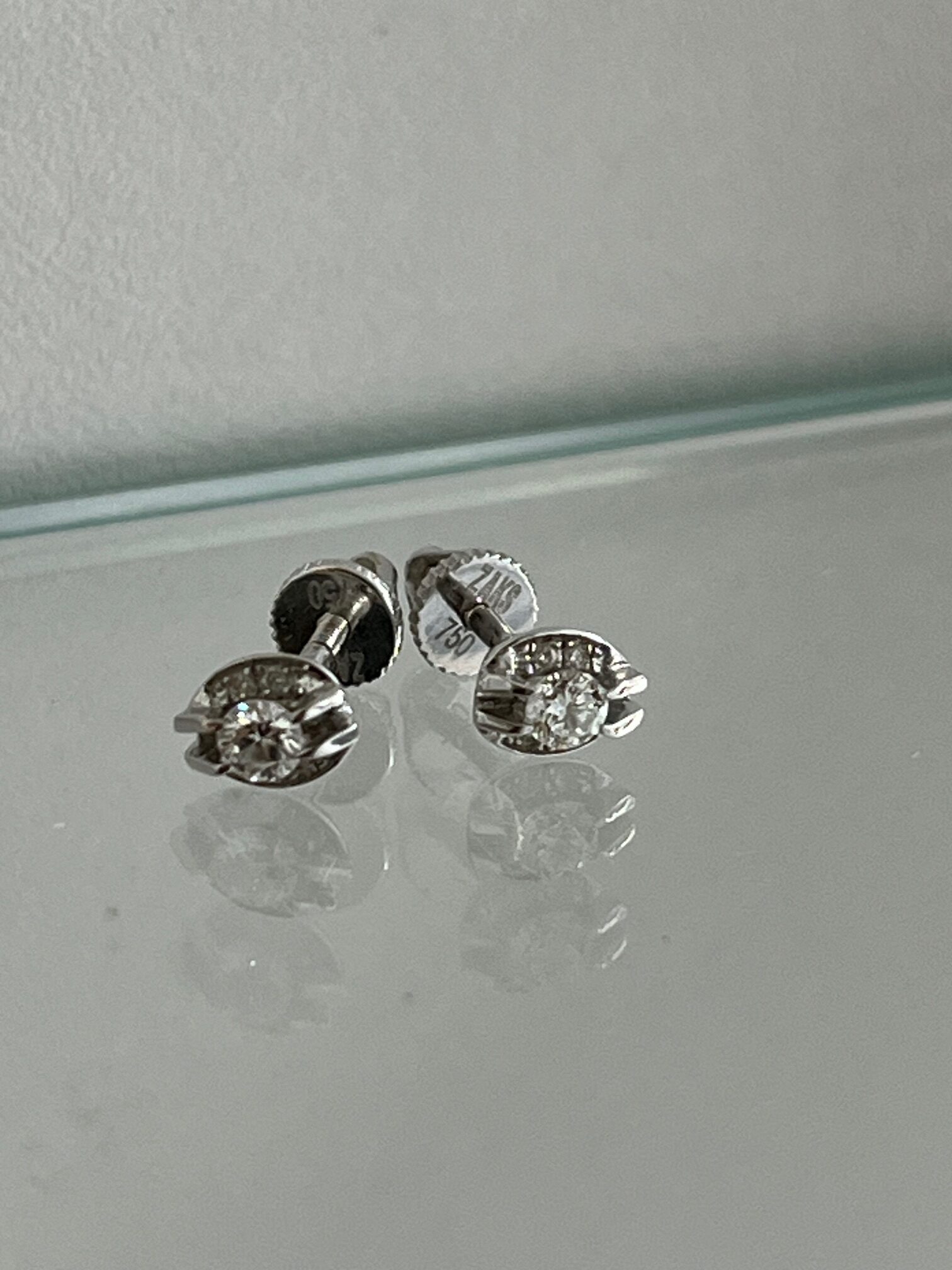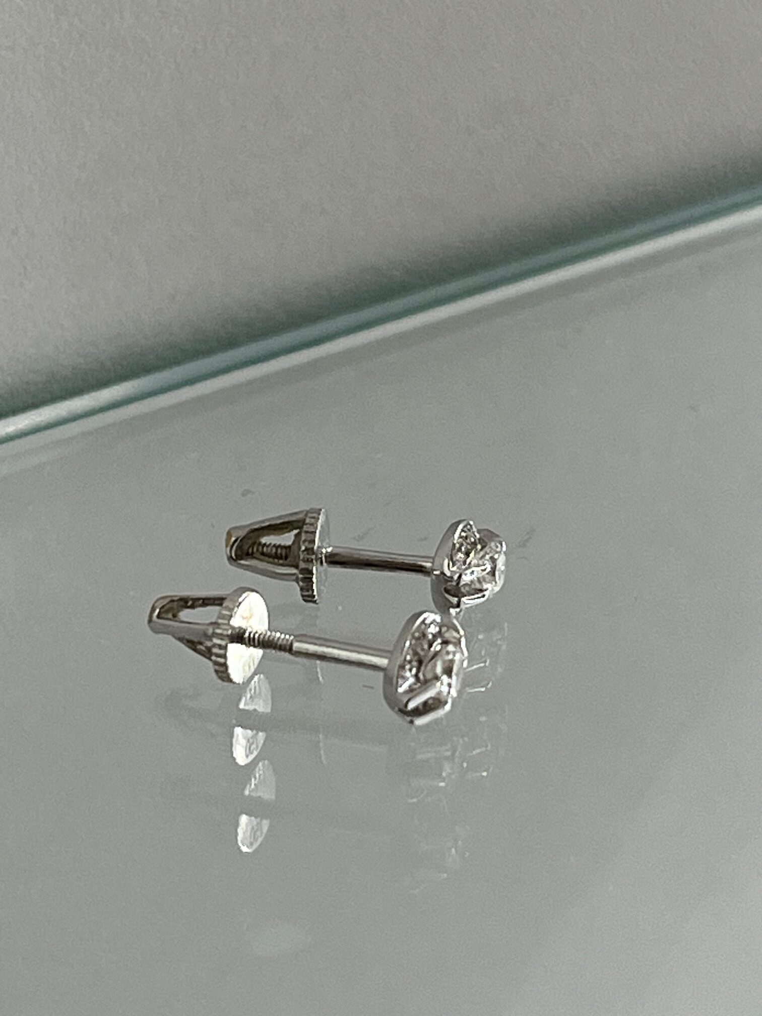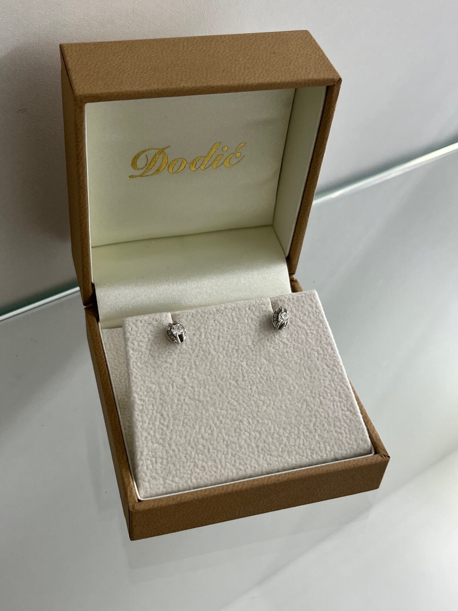 MALENE NAUŠNICE BIJELO ZLATO UKRAŠENE BRILJANTIMA 2 X 0,07 CT BRILJANTI MASA: 1,49 G FINOĆA: 18K / 750 ZATVARANJE NA ŠARAFIĆE STANJE: OČUVANE, OČIŠĆENE LOKACIJA: MESNIČKA 2, ZG / 092 5000 550