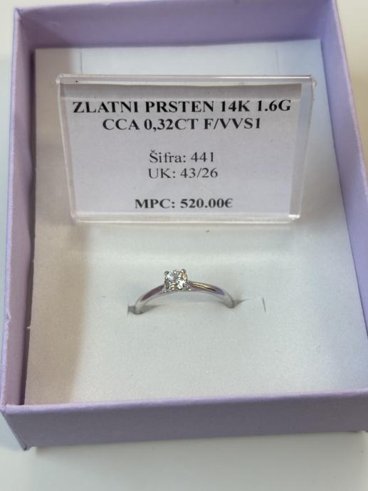 Finoća: 14 KARATA (585) Težina: 1,6G Dijamant: CCA 0,32CT