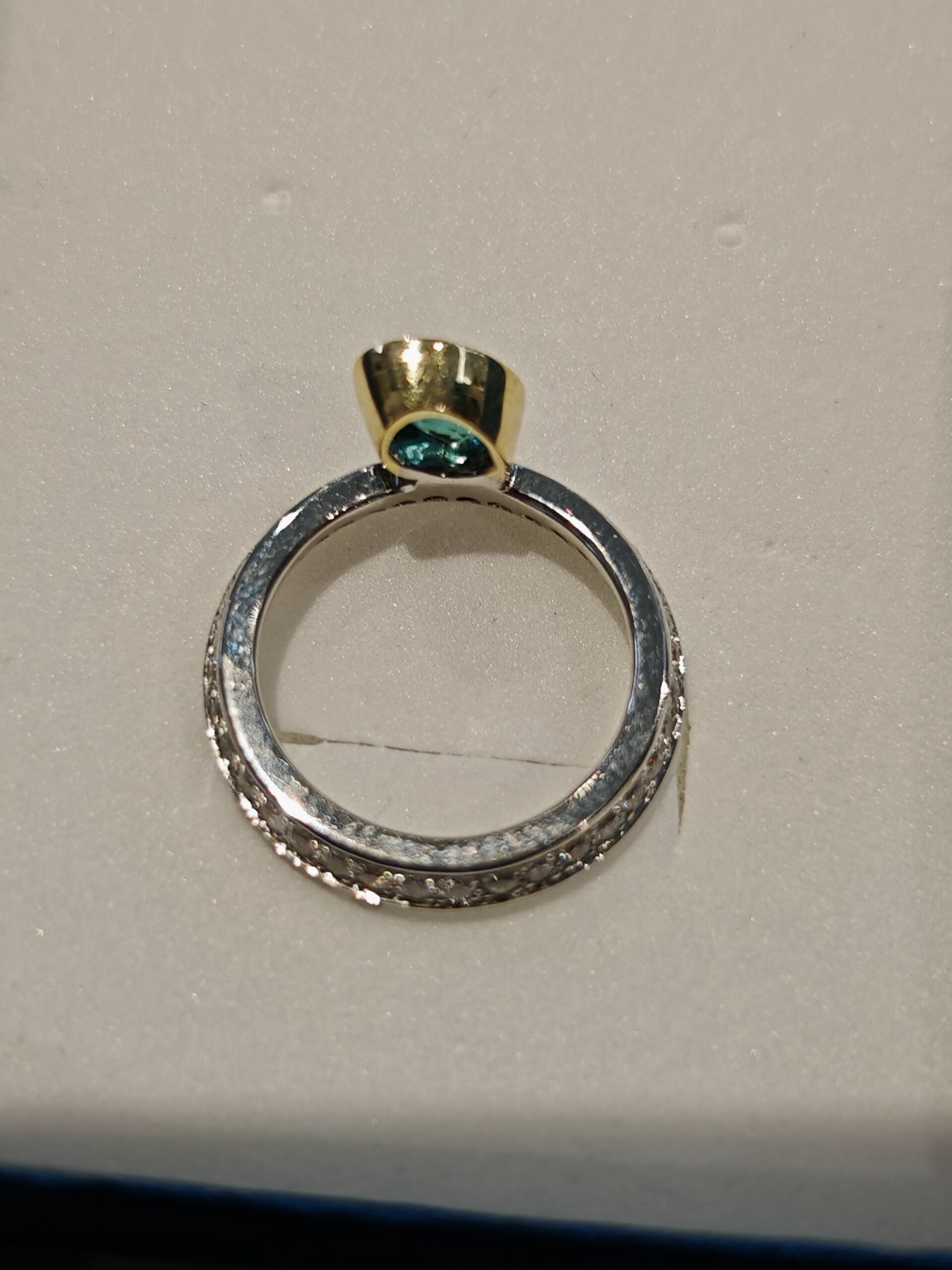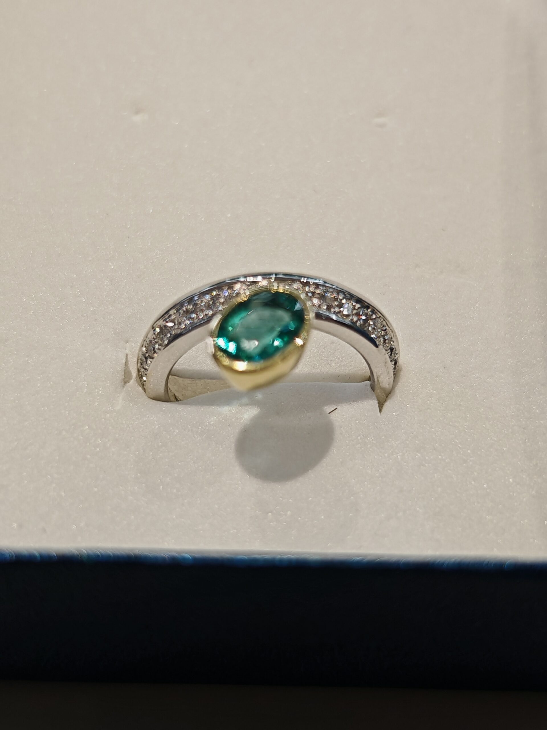 ZLATNI PRSTEN SA BRILJANTIMA I SMARAGDOM