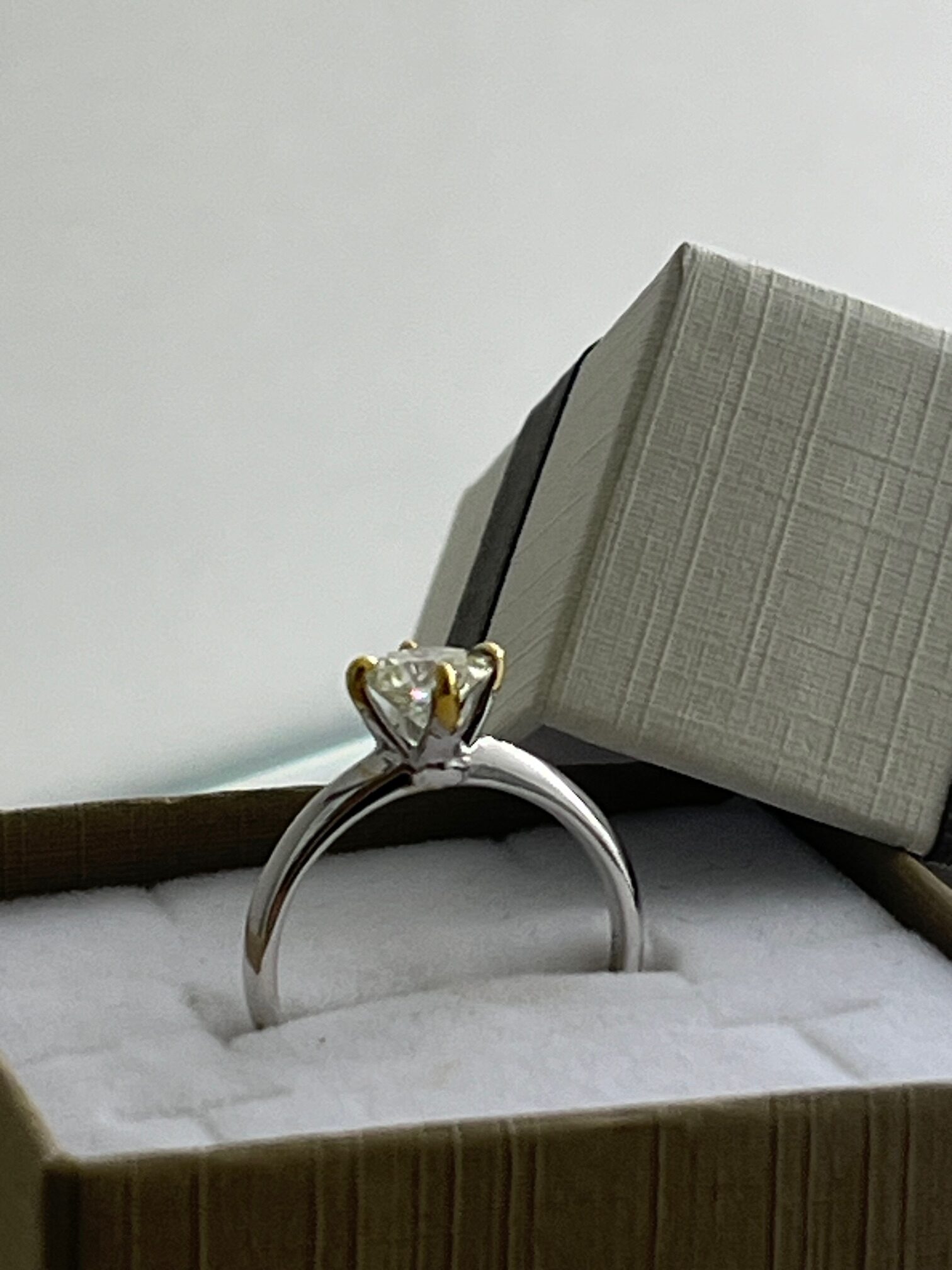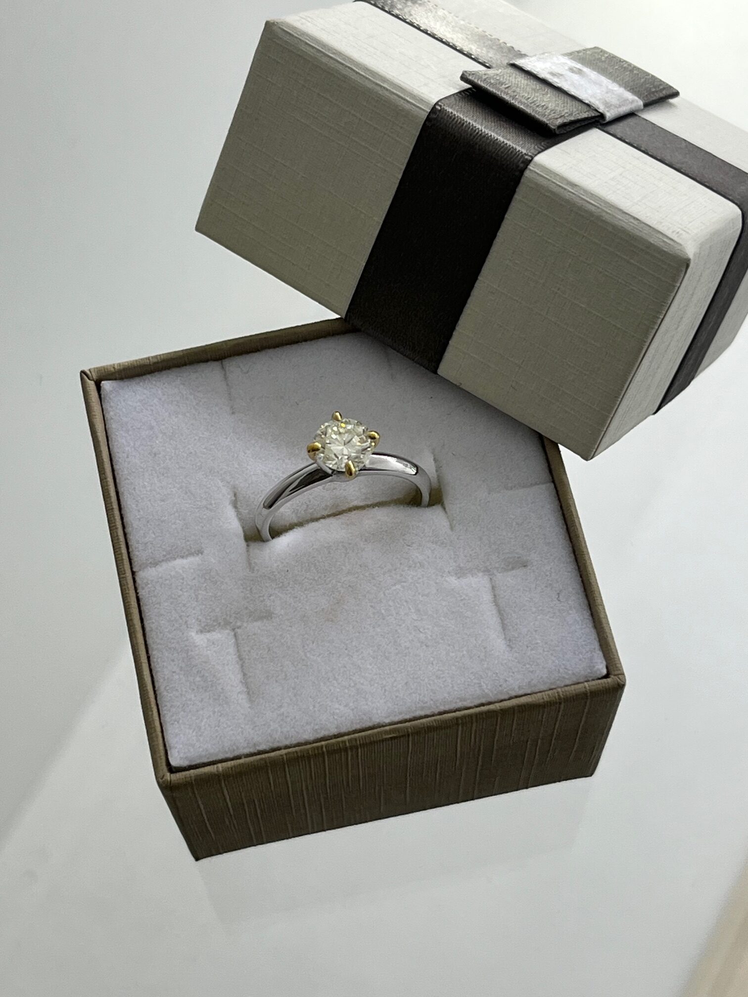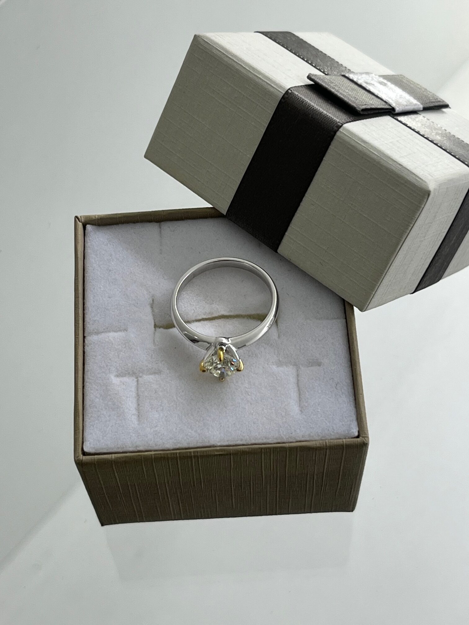 ZLATNI PRSTEN SA BRILJANTOM (BIJELO ZLATO) BRILJANTI CCA: 1,03 CT / VVS1-K FINOĆA ZLATA: 18K / 750 MASA: 3,6 G VELIČINA: 15 / 55 STANJE: OČUVAN / OČIŠĆEN LOKACIJA: MESNIČKA 2, ZG / 092 5000 550