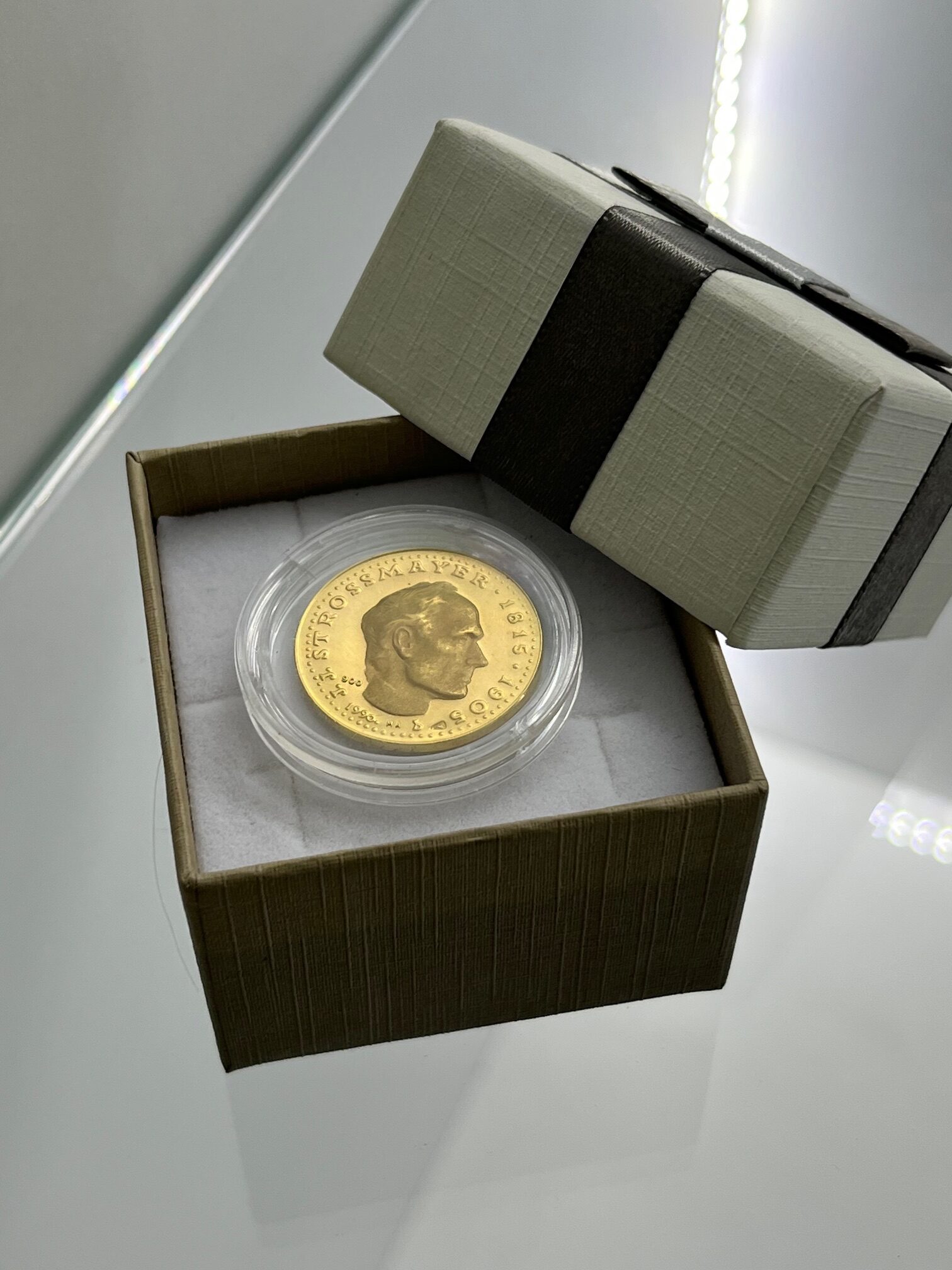 ZLATNIK J.J. STROSSMAYER 1815. STANJE: VRLO OČUVAN, SITNE NAZNAKE KORIŠTENJA MASA: 8,83 G FINOĆA: 900 / 21 K ISPORUKA: ZLATNIK LOKACIJA: MESNIČKA 2, ZG / 092 5000 550 MPC: 1545,00€